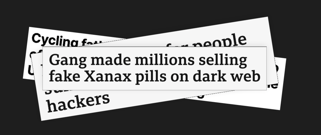 - Ben Godfrey from BBC detailed a gang making millions from selling fake Xanax pills on the dark web, produced in the UK and sold internationally.