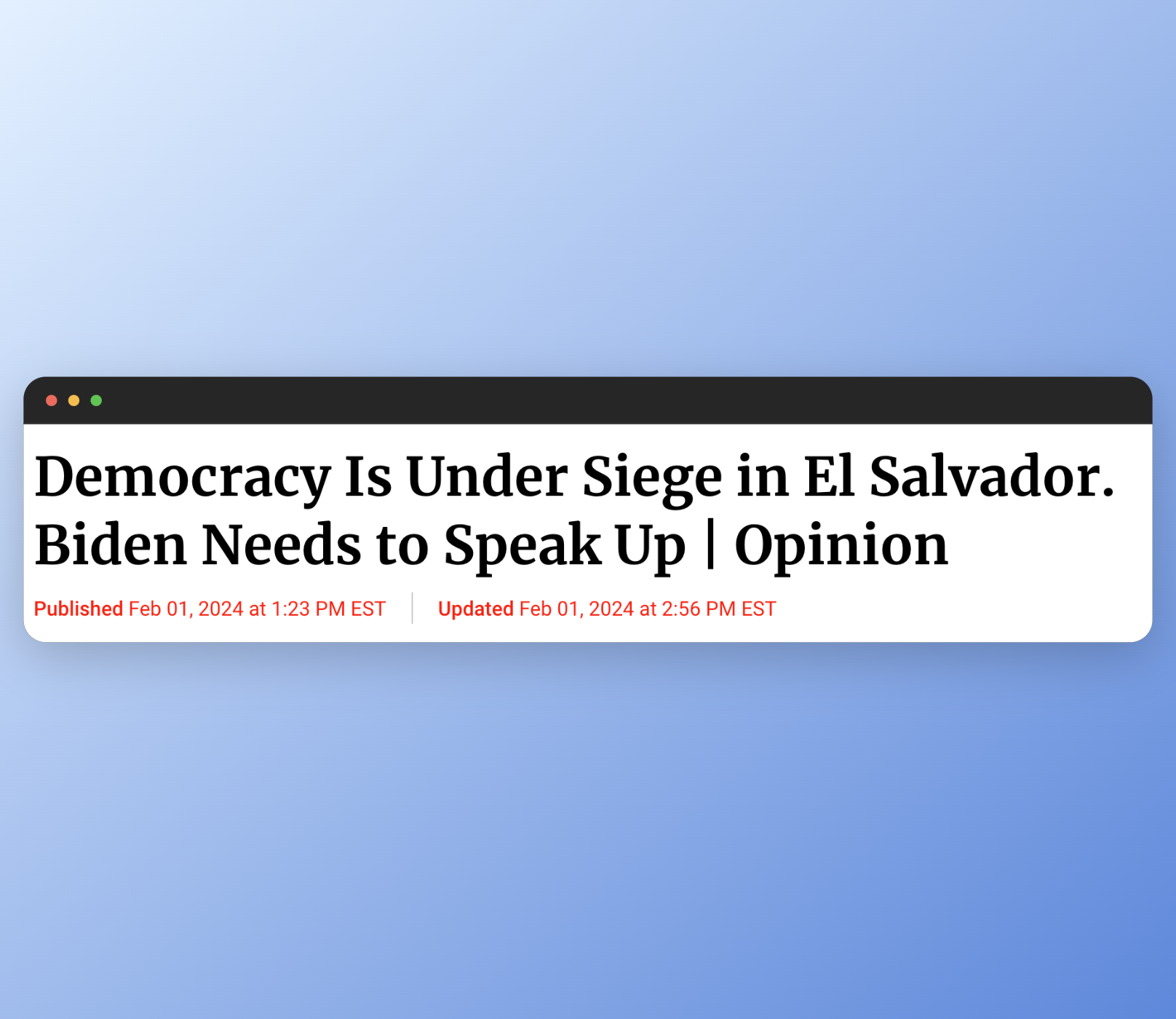 Highlighting another article, an opinion piece in Newsweek by Guggenheim Fellow Robin Broad and John Cavanagh, Senior Advisor at the Institute for Policy Studies, titled "Democracy Is Under Siege in El Salvador. Biden Needs to Speak Up", they went on to report that "U.S. lawmakers protested Bukele's move to make Bitcoin legal tender alongside the dollar, citing cryptocurrency's ease in laundering money".