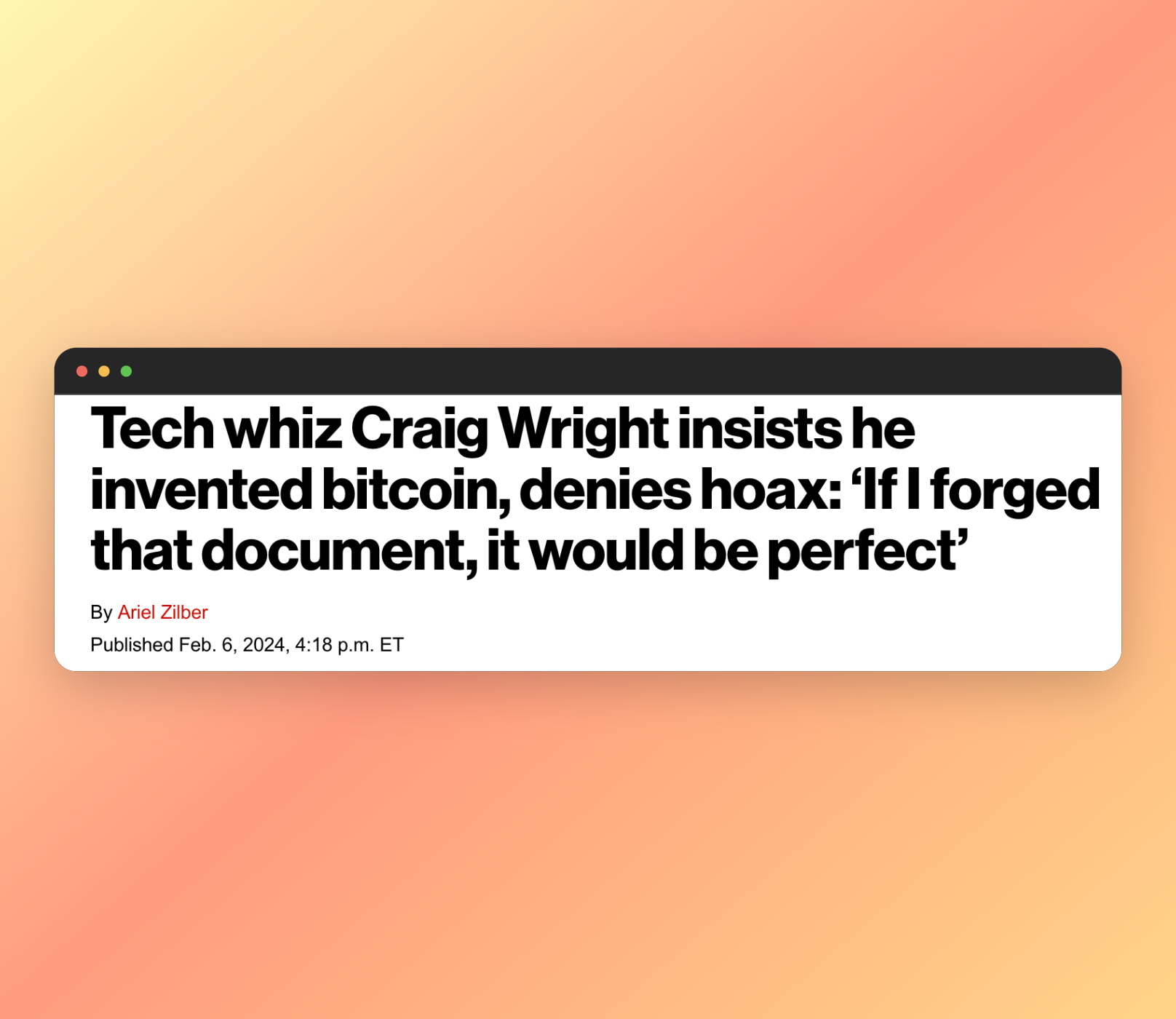 But the best example that reflects this entire case in a nutshell is Alex Hern of The Guardian quoting Wright's audacious courtroom declaration: "If I forged that document, it would be perfect."