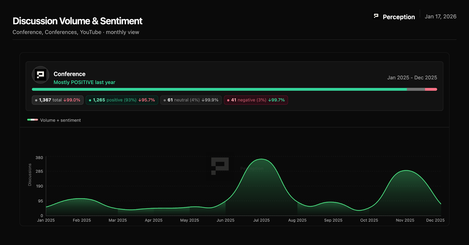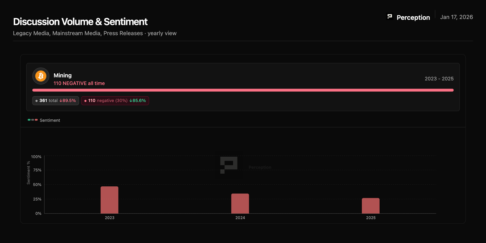 Sentiment classification uses a combination of proprietary analysis systems and human validation on edge cases. Full methodology documentation available at [perception.to/methodology].