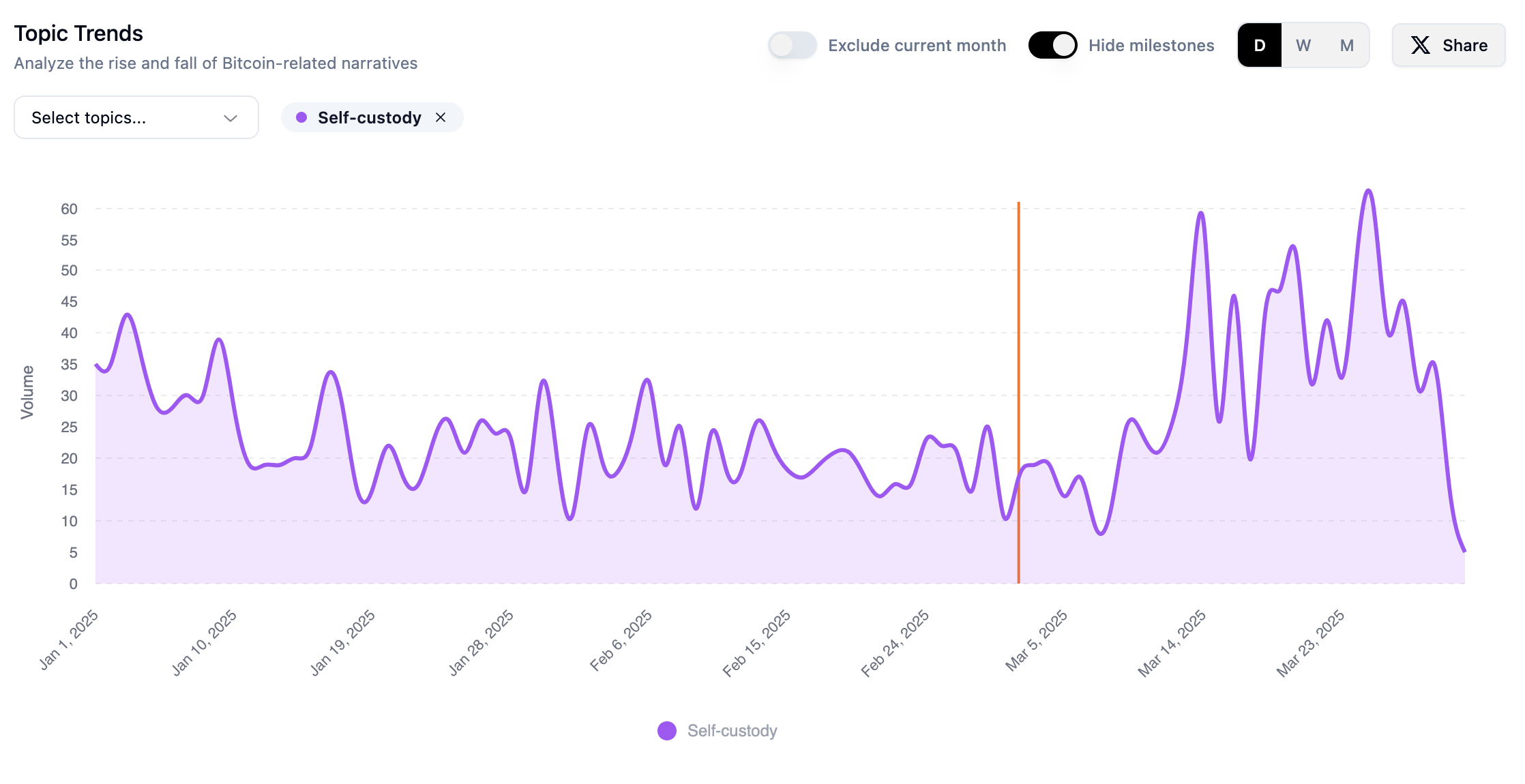 - The announcement of the U.S. Strategic Bitcoin Reserve on March 2 triggered a sharp rise in self-custody discourse.