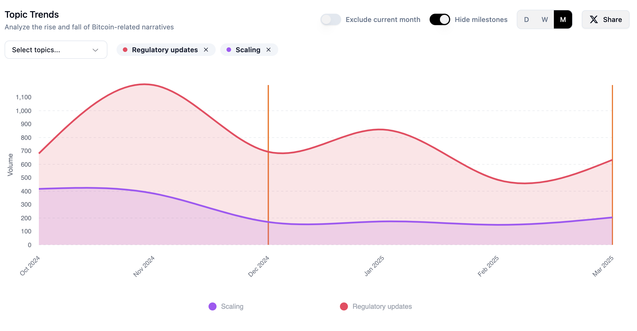- Regulatory updates became one of the most discussed topics in both crypto and mainstream outlets.
