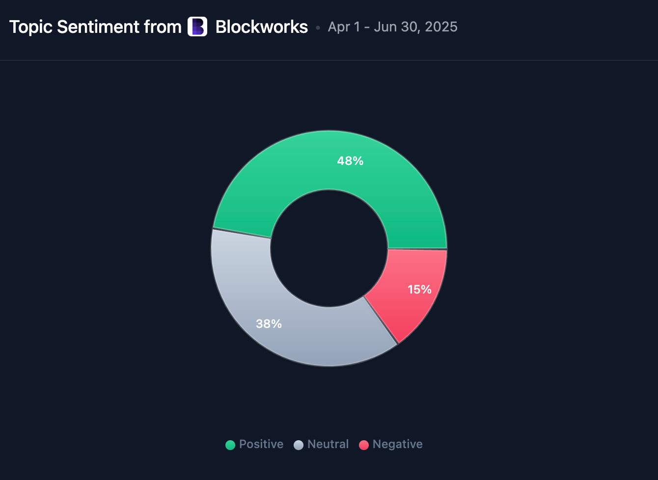 Narrative Positioning: Despite lower volume, Blockworks maintains analytical distance. Their 75% negative crime coverage and measured market analysis (46.2% positive vs. sector average ~55%) suggests institutional focus over retail enthusiasm.