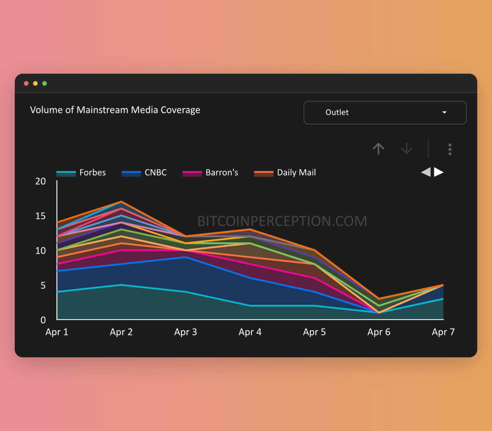 As we approach The Halving, mentions in the mainstream media have surged, with the first week of April witnessing an astonishing 50% of March's entire coverage.