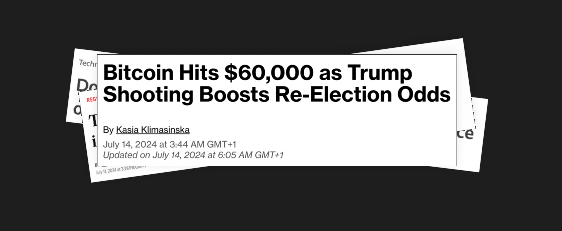 - Kasia Klimasinska from Bloomberg covered how Bitcoin rose above $60,000 after Donald Trump’s defiant response to an assassination attempt spurred speculation that his chances of winning the presidential election have climbed.